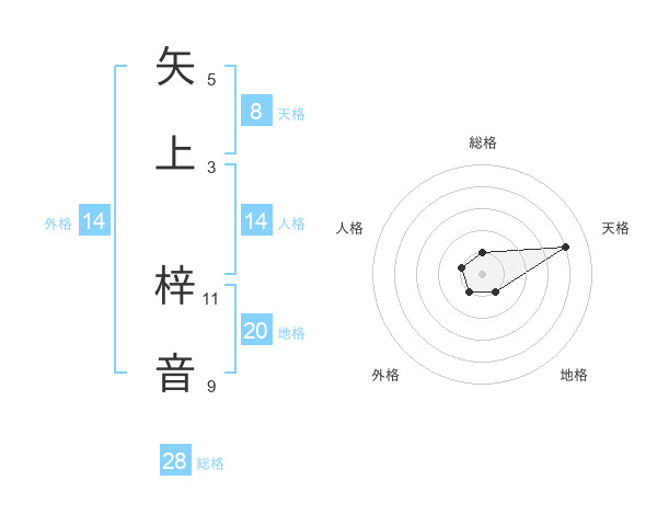 矢上 梓音さんを姓名の画数から五運を鑑定