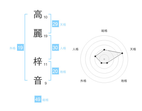 高麗 梓音さんの総格は49画の2点!