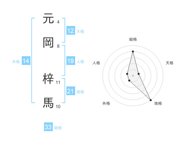 元岡 梓馬さんを姓名の画数から五運を鑑定