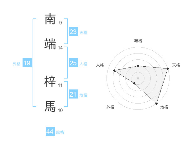 南端 梓馬さんの天格は23画の5点!