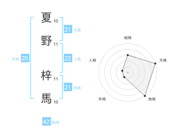 夏野 梓馬さんの天格は21画の5点!