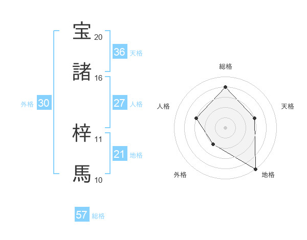 宝諸 梓馬さんを姓名の画数から五運を鑑定