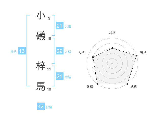 小礒 梓馬さんを姓名の画数から五運を鑑定