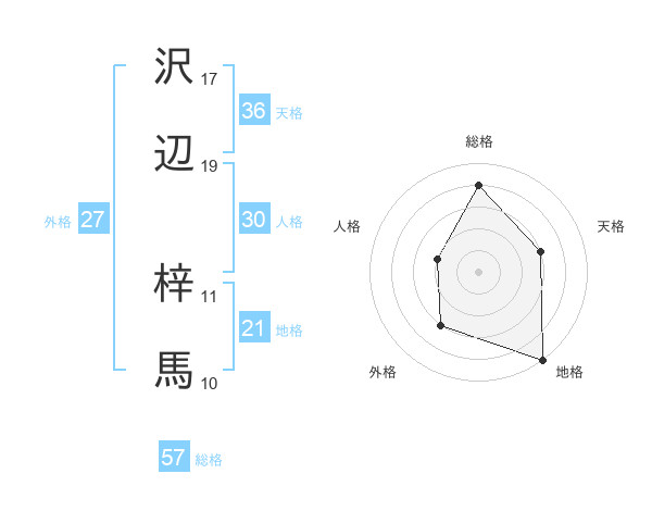 沢辺 梓馬さんの総格は57画の4点!