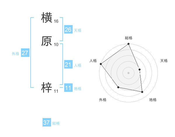 横原 梓さんの総格は37画の5点!
