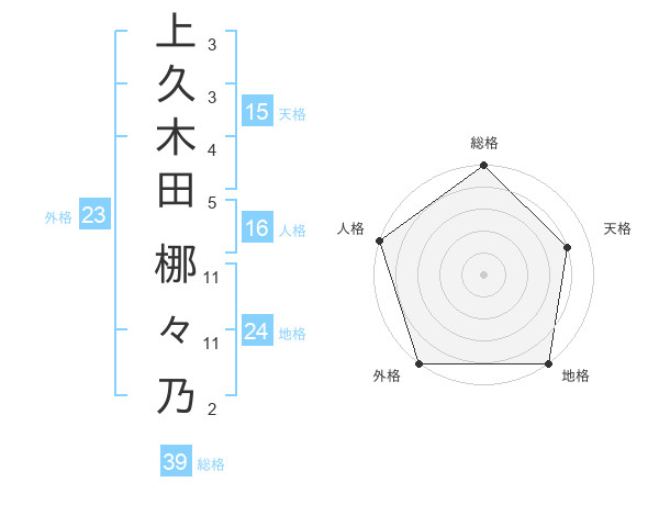 上久木田 梛々乃さんを姓名の画数から五運を鑑定