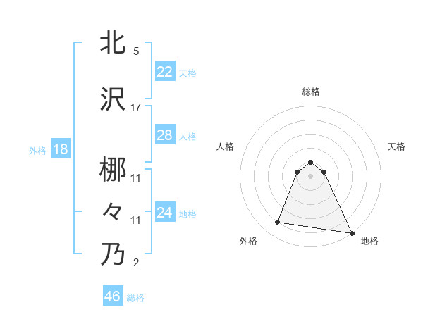 北沢 梛々乃さんの総格は46画の1点!