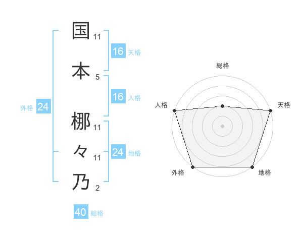 国本 梛々乃さんを姓名の画数から五運を鑑定