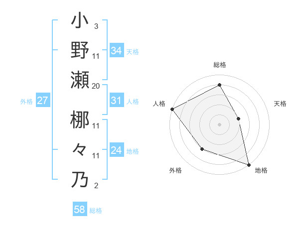 小野瀬 梛々乃さんの総格は58画の4点