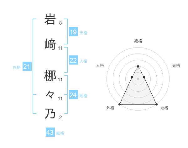 岩﨑 梛々乃さんの外格は21画の5点!