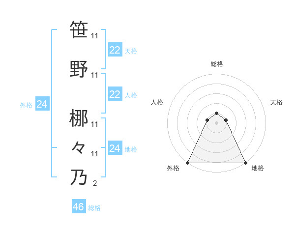 笹野 梛々乃さんを姓名の画数から五運を鑑定
