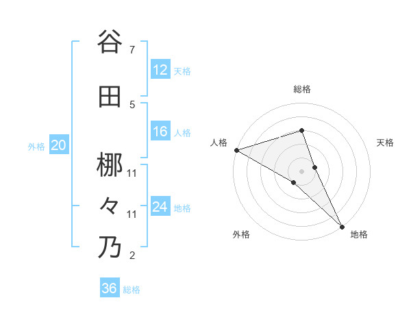 谷田 梛々乃さんを姓名の画数から五運を鑑定