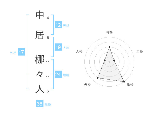 中居 梛々人さんを姓名の画数から五運を鑑定