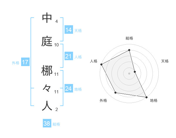 中庭 梛々人さんの総格は38画の4点!