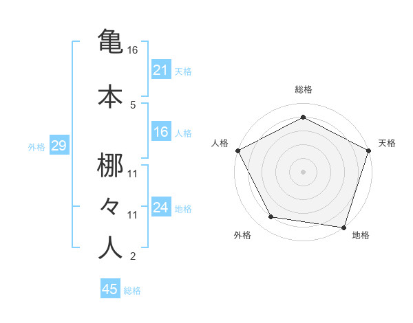 亀本 梛々人さんの人格は16画の5点!