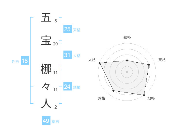 五宝 梛々人さんを姓名の画数から五運を鑑定