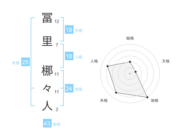 冨里 梛々人さんの天格は19画の1点!