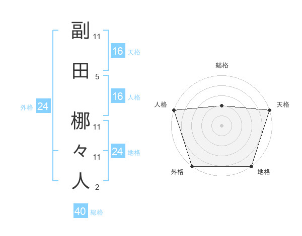 副田 梛々人さんの外格は24画の5点!