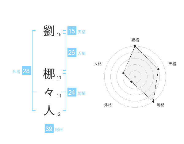 劉 梛々人さんを姓名の画数から五運を鑑定