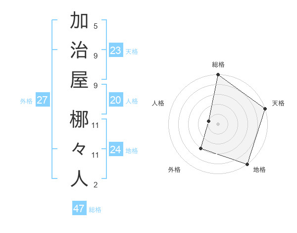 加治屋 梛々人さんを姓名の画数から五運を鑑定