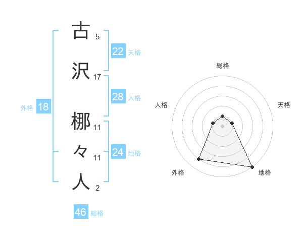 古沢 梛々人さんを姓名の画数から五運を鑑定