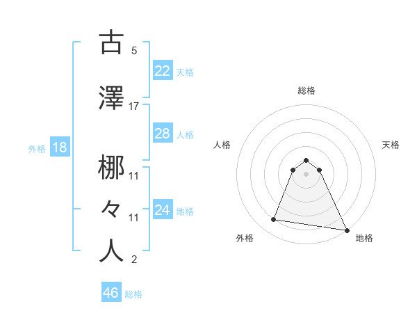 古澤 梛々人さんを姓名の画数から五運を鑑定