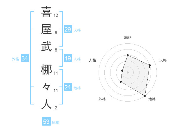 喜屋武 梛々人さんを姓名の画数から五運を鑑定