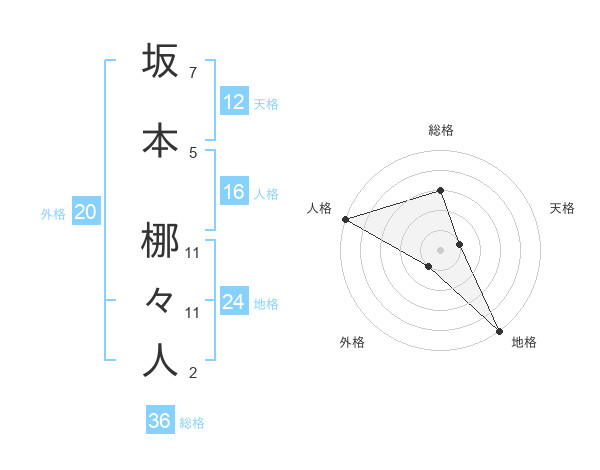 坂本 梛々人さんの天格は12画の1点!