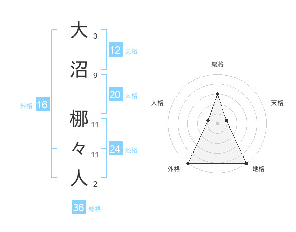 大沼 梛々人さんを姓名の画数から五運を鑑定
