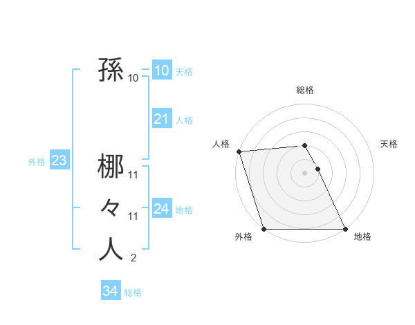 孫 梛々人さんを姓名の画数から五運を鑑定