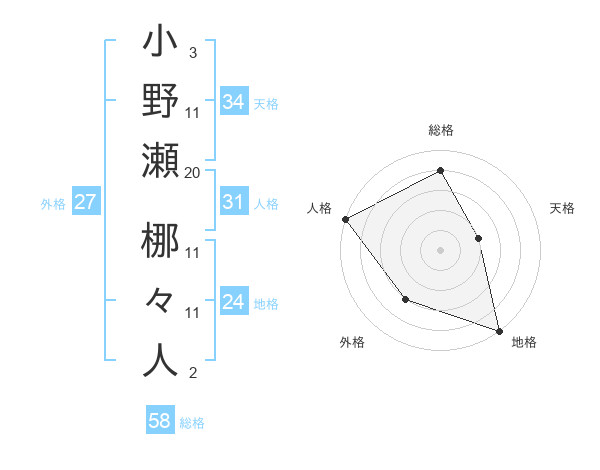 小野瀬 梛々人さんを姓名の画数から五運を鑑定