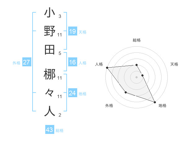 小野田 梛々人さんを姓名の画数から五運を鑑定