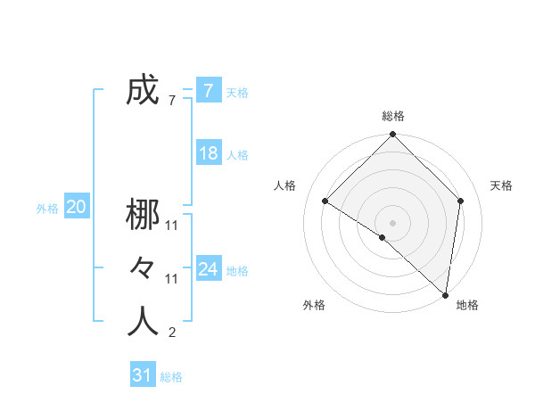 成 梛々人さんの総格は31画の5点