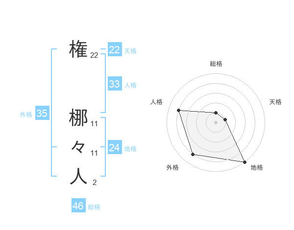 権 梛々人さんの天格は22画の1点!
