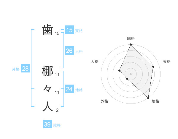 歯 梛々人さんを姓名の画数から五運を鑑定