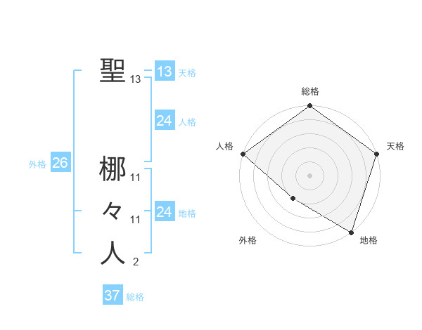 聖 梛々人さんの総格は37画の5点!