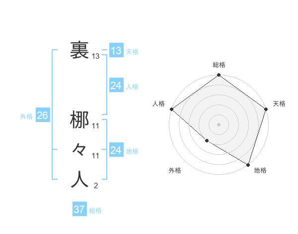 裏 梛々人さんの総格は37画の5点!