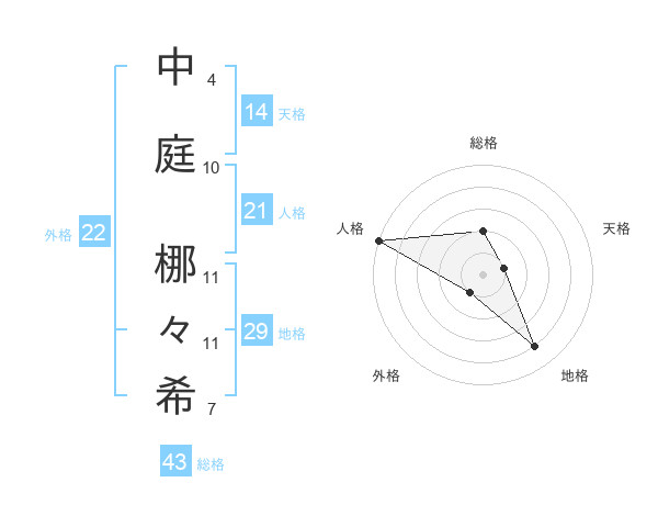 中庭 梛々希さんの総格は43画の2点!