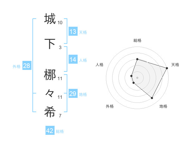 城下 梛々希さんを姓名の画数から五運を鑑定