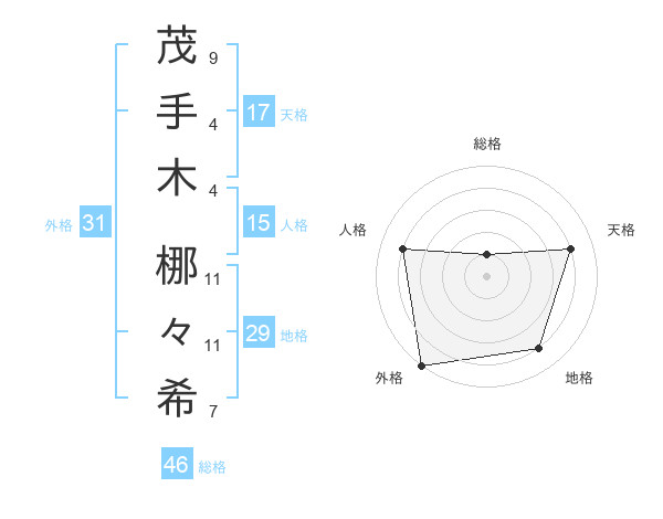 茂手木 梛々希さんを姓名の画数から五運を鑑定