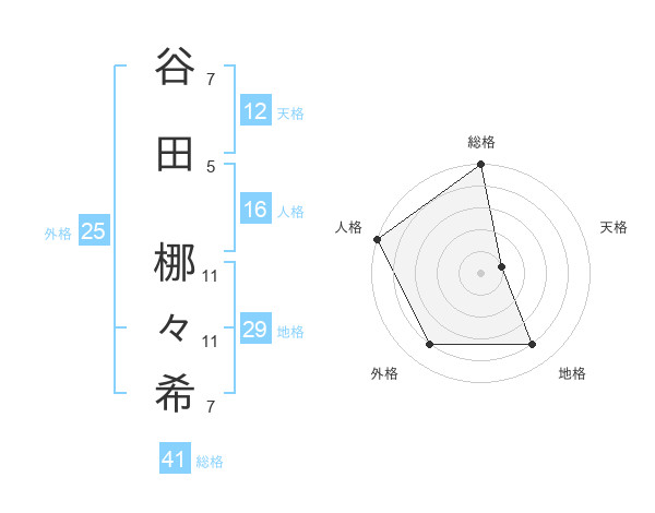 谷田 梛々希さんを姓名の画数から五運を鑑定