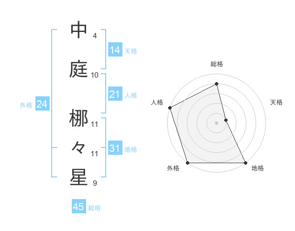 中庭 梛々星さんを姓名の画数から五運を鑑定