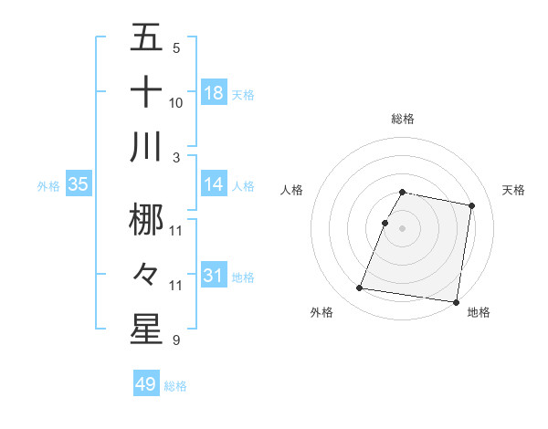 五十川 梛々星さんの外格は35画の4点!