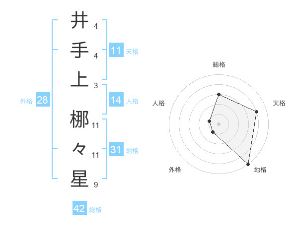 井手上 梛々星さんを姓名の画数から五運を鑑定