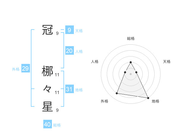 冠 梛々星さんの総格は40画の2点!