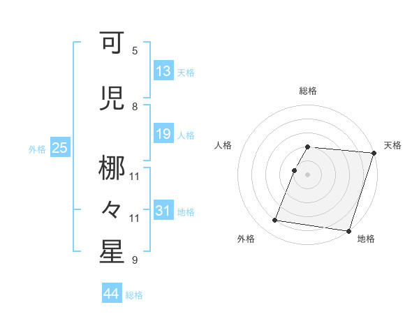 可児 梛々星さんを姓名の画数から五運を鑑定