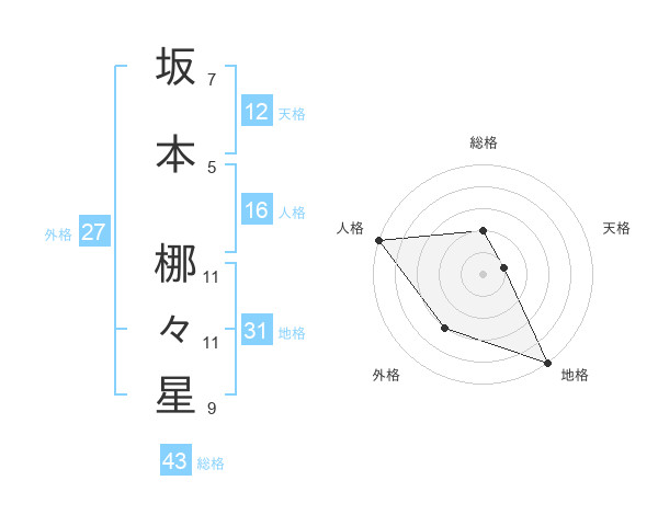 坂本 梛々星さんの総格は43画の2点!
