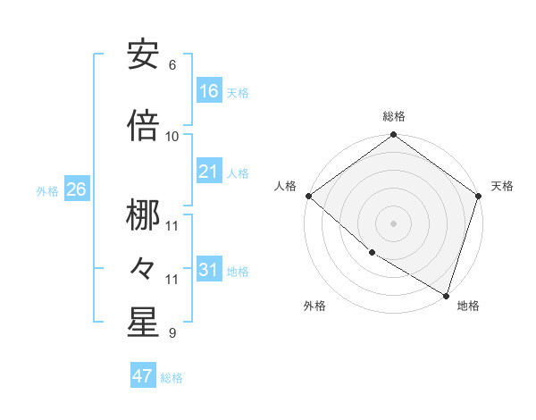 安倍 梛々星さんを姓名の画数から五運を鑑定
