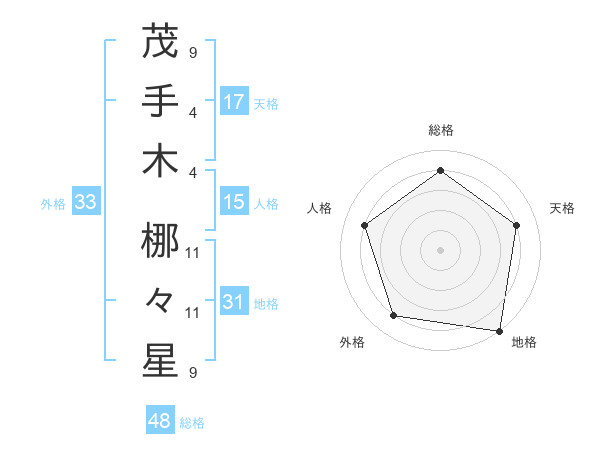 茂手木 梛々星さんを姓名の画数から五運を鑑定