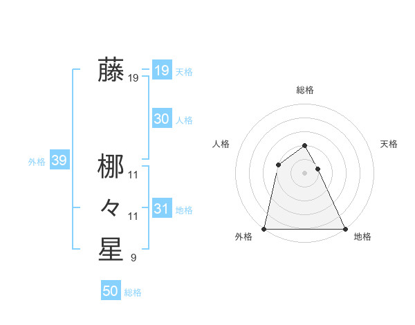 藤 梛々星さんの総格は50画の2点!